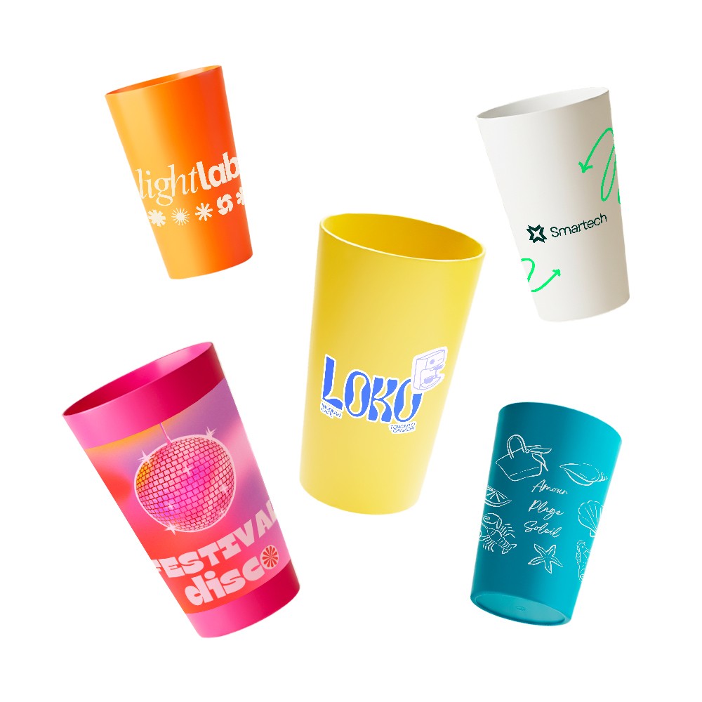 Les gobelets réutilisables personnalisés sont aussi bien adaptés pour un événement professionnel que pour un événement personnel. Sur des salons professionnels, des festivals, des forums ou encore des soirées spéciales, ils vous aideront à mettre en avant votre image de marque ! Et lors d’événements personnels comme des mariages ou des anniversaires, les gobelets réutilisables personnalisés vous permettront de marquer les esprits et de garder un souvenir de votre superbe événement !