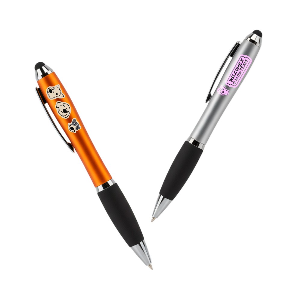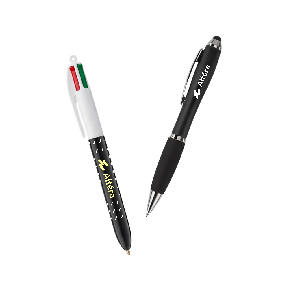 Pour personnaliser vos stylos publicitaires, différentes options s’offrent à vous, selon le type de stylo que vous allez choisir. Si vous optez pour le stylo tactile, vous pourrez sélectionner la couleur de ce dernier parmi noir, blanc, gris, bleu, jaune, orange, rouge, violet et gris. Vous pourrez également apposer le logo de votre entreprise dessus, ou même ajouter une sérigraphie sur le corps du stylo tactile selon une seule couleur. Si vous optez pour le stylo BIC 4 couleurs, vous pourrez le personnaliser avec une impression numérique contenant différentes couleurs, ainsi qu’avec un marquage sur le corps du stylo.