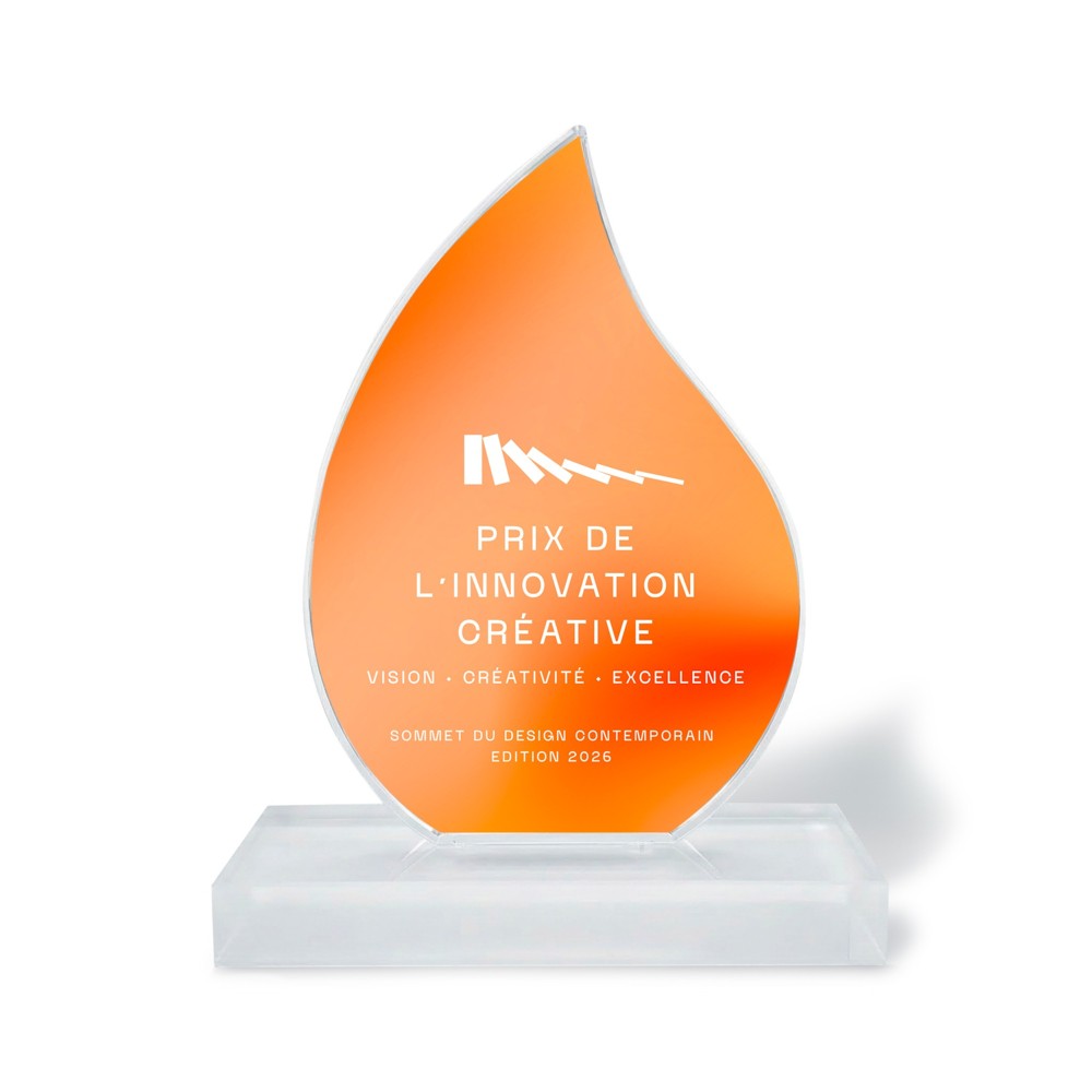 Nos trophées publicitaires sont fabriqués en plexiglass de haute qualité, disponibles en deux configurations :